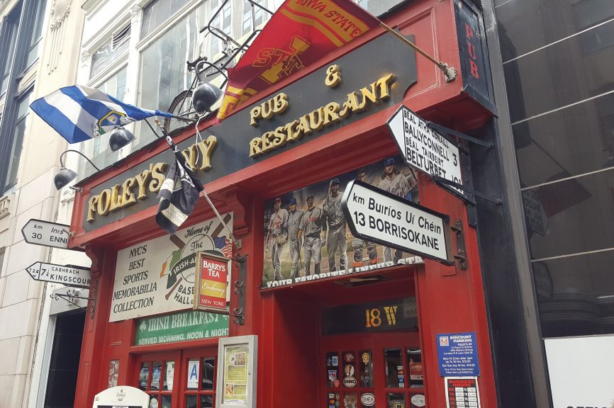 O Foley’s se define como “um pub irlandês com uma pegada de beisebol”. E que “pegada”! São mais de 3 mil bolas de beisebol autografadas, espalhadas pelas paredes. De Hank Aaron a Ryan Zimmerman, passando por Mickey Mantle. Fora as camisas, tacos e outros artigos afins.