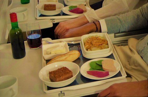 Quanto à gastronomia, é reconfortante ver um menu impresso, com explicações caprichadas sobre a comida. Assim, ninguém precisa ficar perguntando aos comissários o que é isso ou aquilo na bandeja. Além do jantar e do café da manhã, foram servidos salgadinhos e bebidas entre uma refeição e outra, além de sorvete!