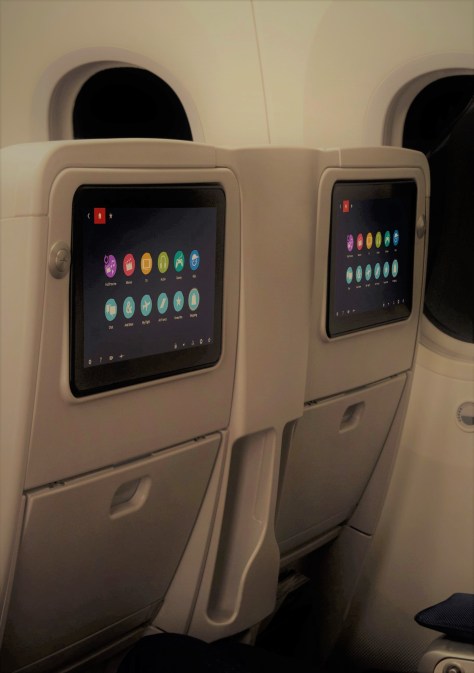 Uma vez no avião, a tela touch-screen é de alta definição e dá para escolher filmes, documentários, séries e desenhos animados em 12 idiomas.