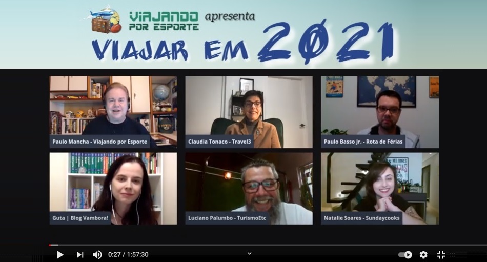Assista agora à live que fizemos com algumas das maiores feras do jornalismo de turismo! Confira só os convidados: • Natie Soares (SundayCooks) • Cláudia Tonaco (Travel3) • Guta Cunha (Vambora!) • Paulo Basso Jr. (Rota de Férias) • Luciano Palumbo (TurismoETC) • Paulo Mancha (VIajando por Esporte)