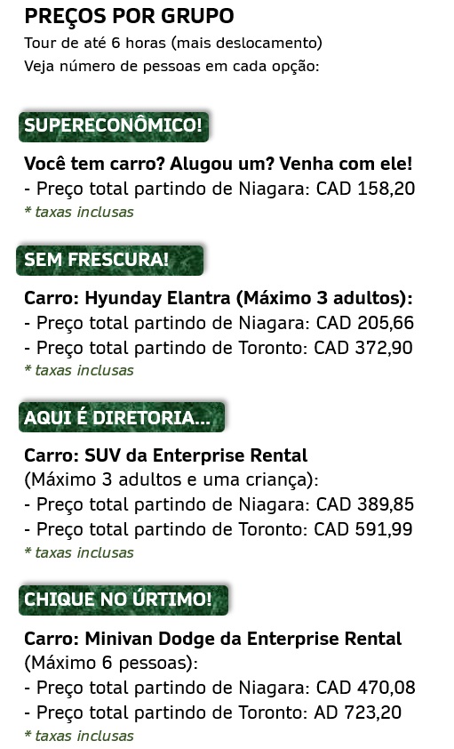 Mas se você prefere vir até Niágara com seu próprio carro ou outro meio de transporte, pode começar o passeio já na região, o que torna a experiência bem mais econômica.